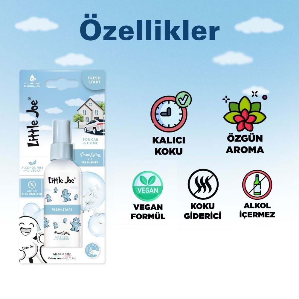 Little Joe Nane Sprey Oda Kokusu 60 ml (Fresh Start) -Koku Giderici -Oto Ev Ofis Parfüm