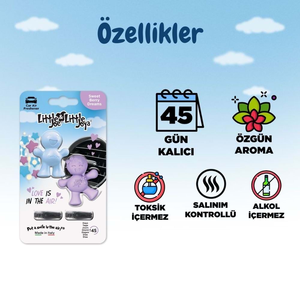 Little Joe Aşk Serisi 2li Paket Ahududu Araç Kokusu (Sweet Berry) -45 Gün -Oto Kokusu Klima Parfüm
