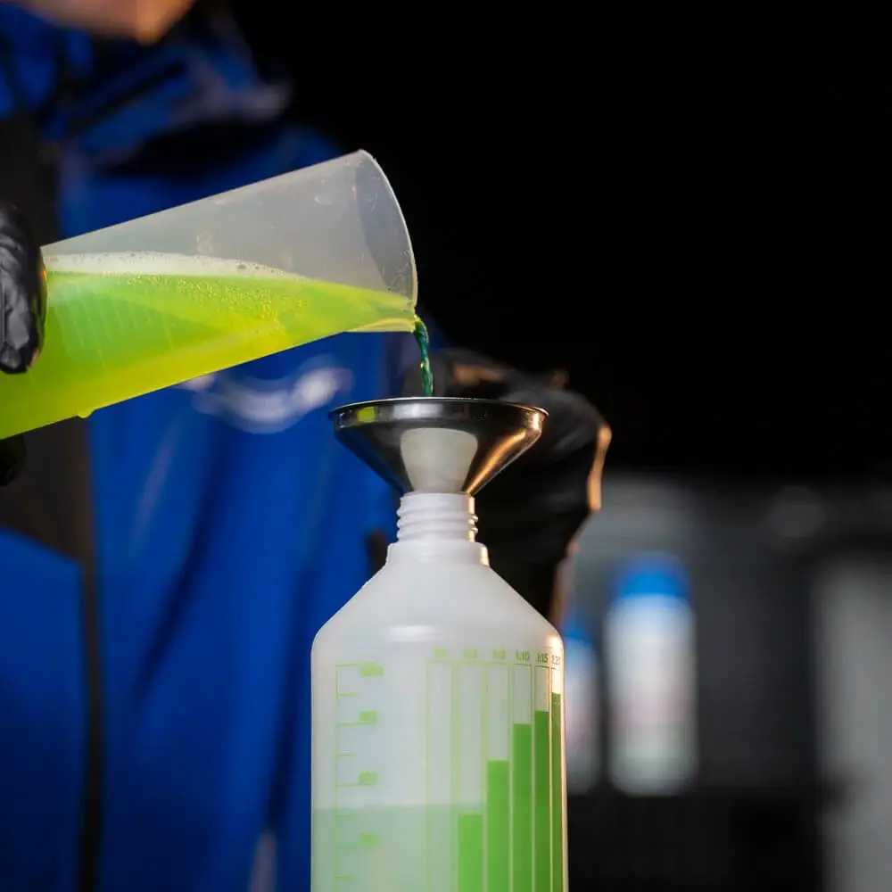 2. Ürünü Ekleyin: Kimyasalı üst çizgiye kadar tamamlayın; ölçek otomatik hesaplar.
