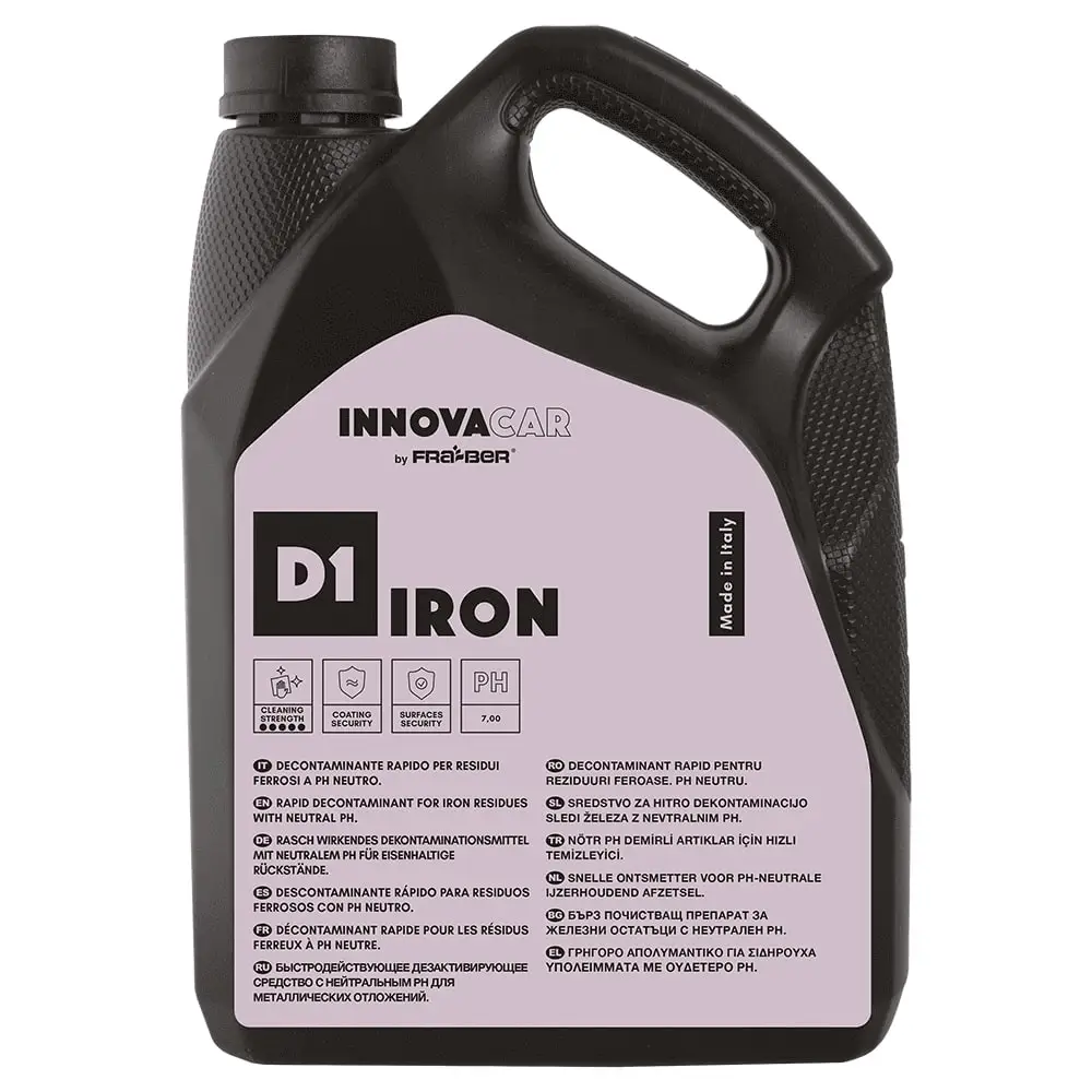 FRA-BER KO IRON, fren balatası tozu, ray kirleri, endüstriyel partikül ve asit yağmuru kalıntılarını mor renkli görsel reaksiyon eşliğinde çözen konsantre jel formüllü demir sökücüdür. Dikey yüzeylerde akmadan tutunur, düşük sülfür kokulu kiraz aroması sayesinde atölye içinde konforlu çalışma sunar.