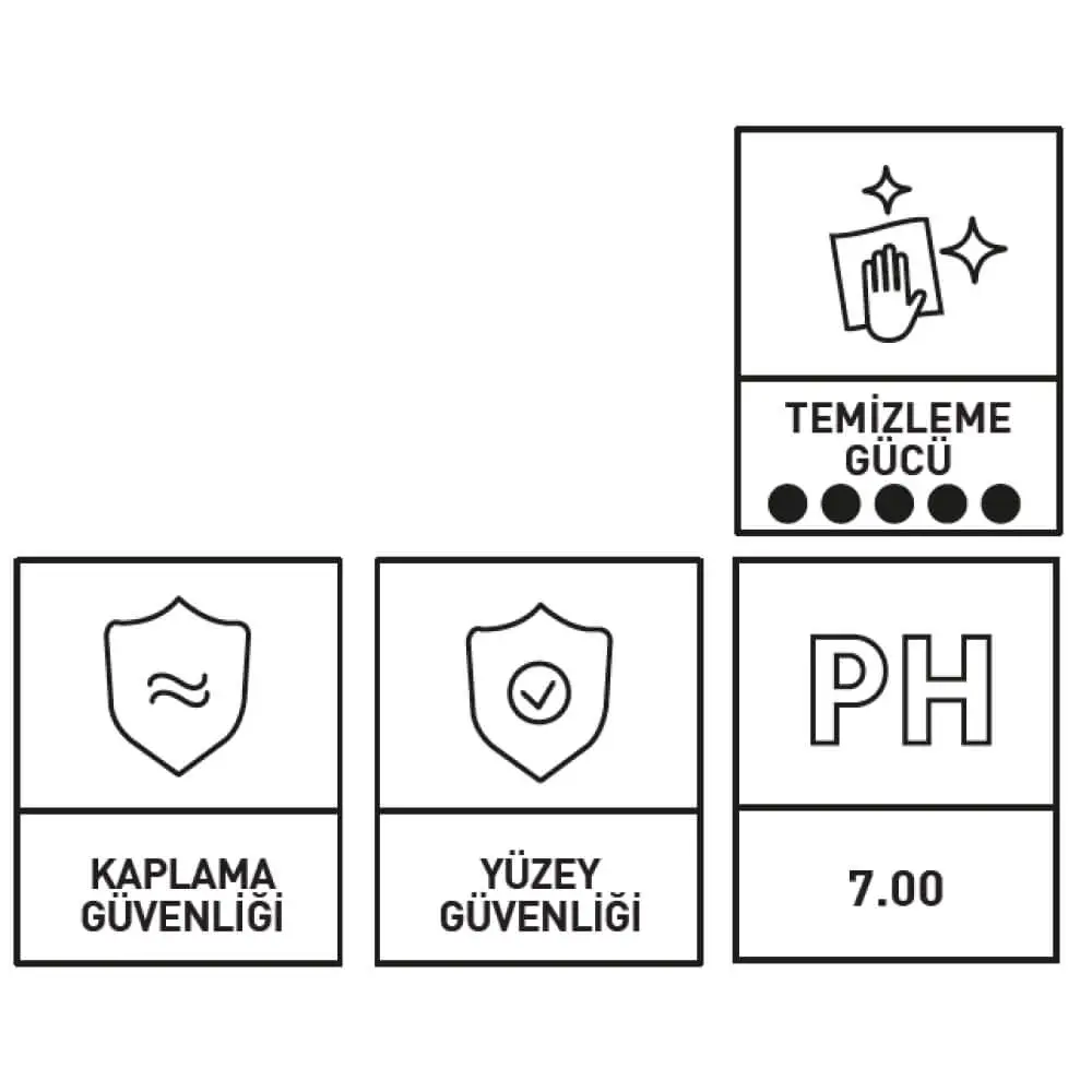 • Konsantre Ekonomi: Saf veya 1 : 2’ye kadar seyreltilebilir; 4,54 L bidon ? 9 L hazır ürün.