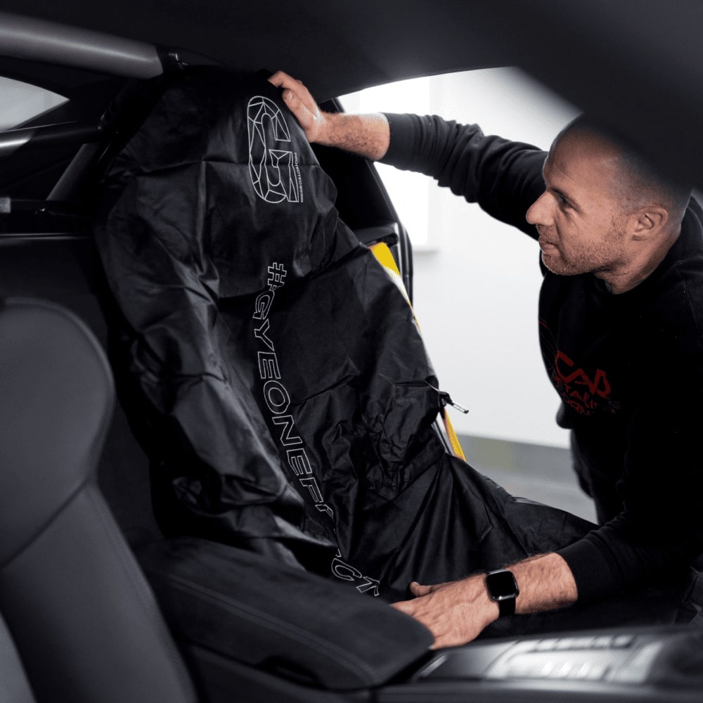 GYEON Seat Cover, yüksek miktarda aşınmaya dayanıklı ve su geçirmez olan yüksek dirençli malzemeden yapılmıştır. Temizlik işlemi sırasında kirlenmeyi önlemek için ön koltuklara uyumludur. Koltuk kılıfı basitçe koltuğun üzerine çekilir ve elastik bir bantla yerinde tutulur.