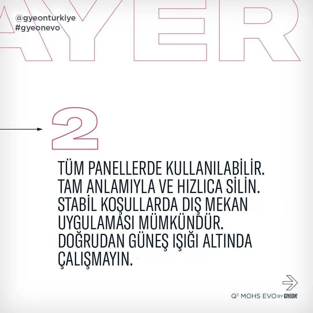 • 1 saat sonra Q²M Cure ile üst katman; su lekesi riskini azaltır.