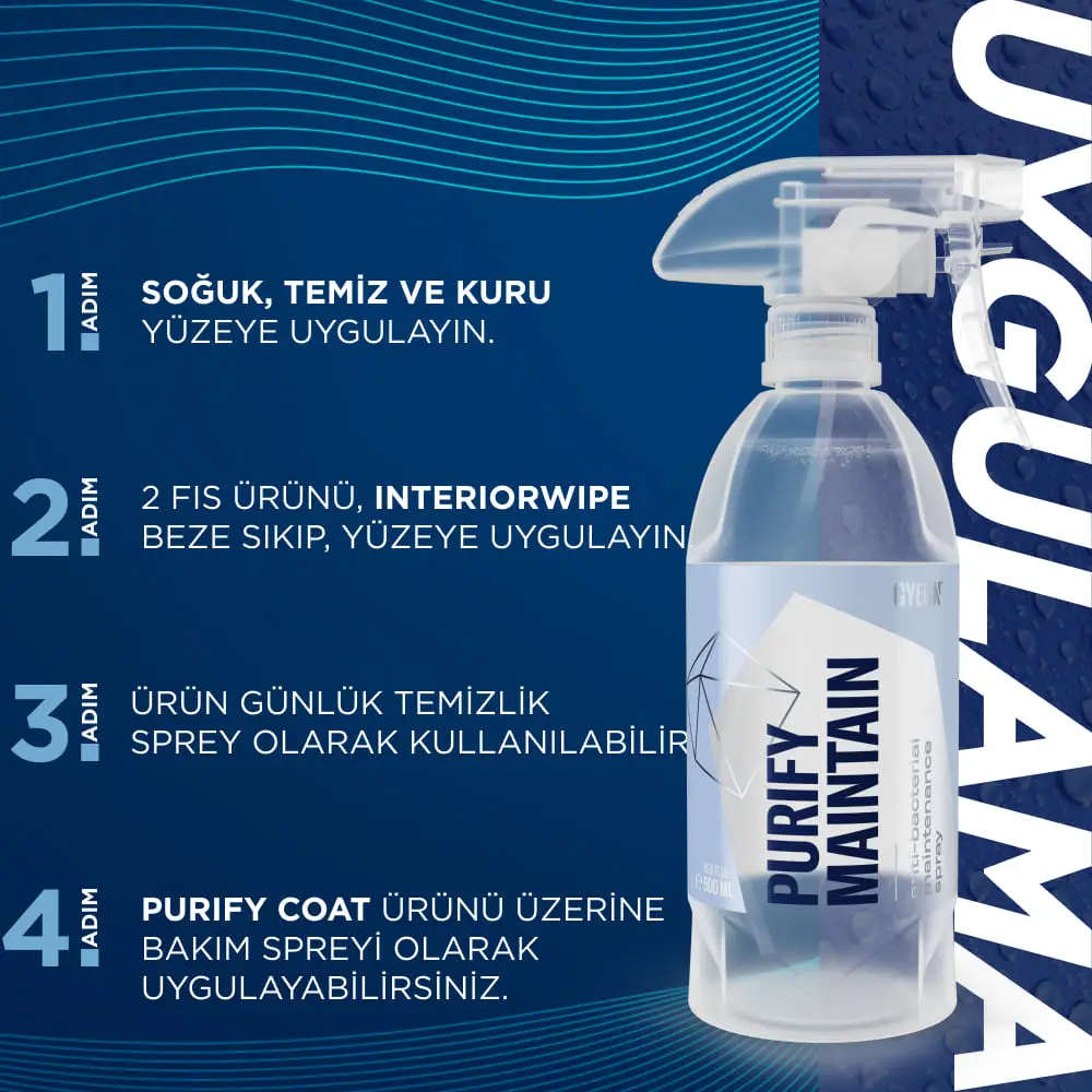 7. Bakım Döngüsü – Her derin temizlemeden sonra mutlaka PurifyMaintain ile yüzeyi yenileyin.
