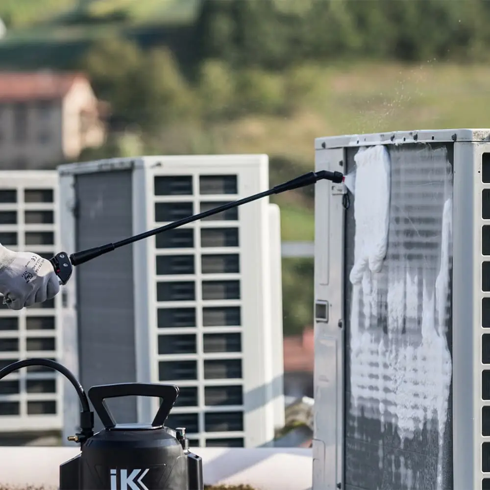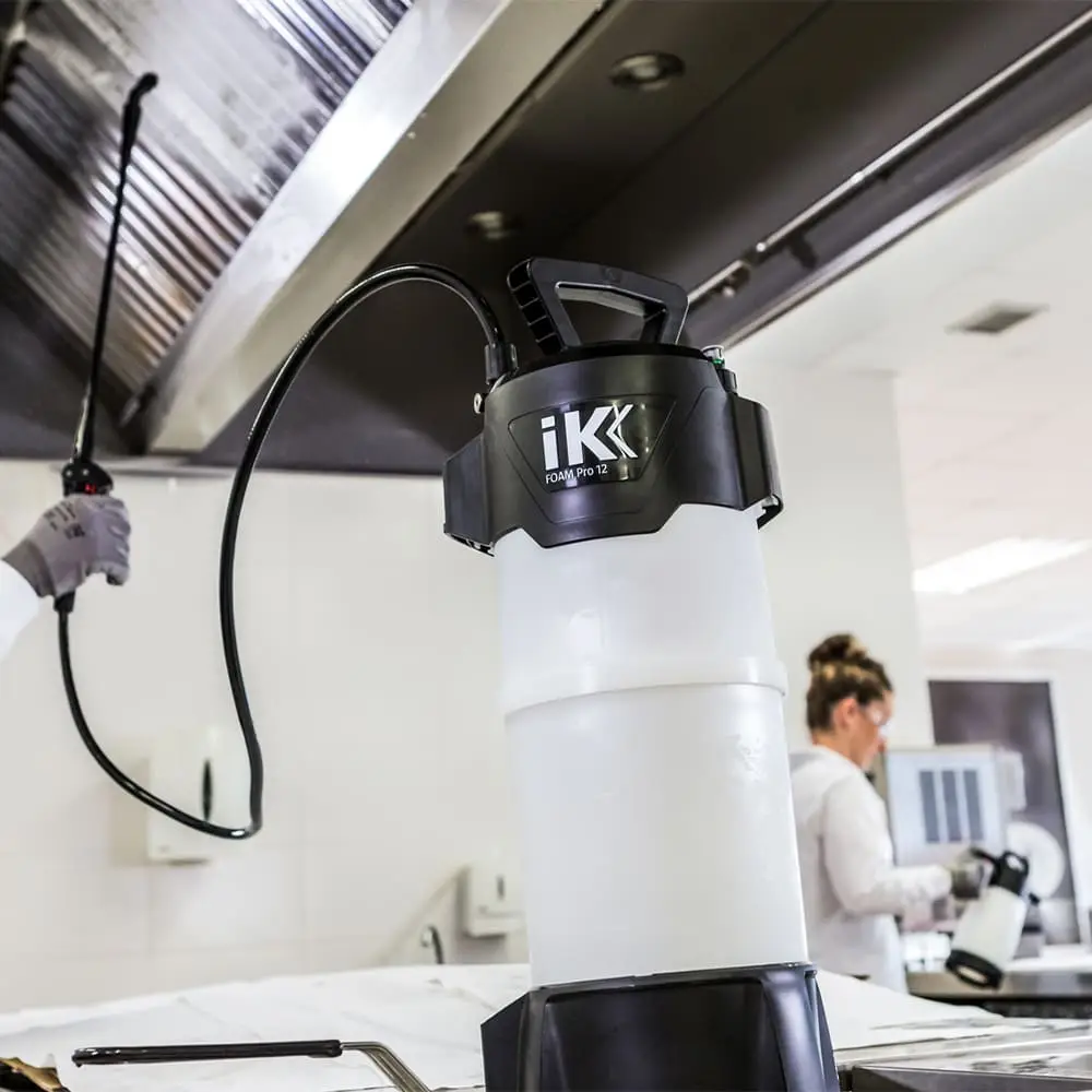 IK FOAM Pro 12 Profesyonel Köpük Yapıcı Pompa, kuru yogun ve dayanıklı köpük üretimi için dizayn edilmiştir. Profesyonel temizlik, sanitasyon ve dezenfeksiyon , HVAC sistem temizliği, araç yıkama ve detaylandırma uygulamalarının yanında gıda işleme alanları ve endüstriyel mutfakların dezenfeksiyonu için yüzey aktif madde içeren kimyasallarla birlikte kullanılmak için üretilmiştir.