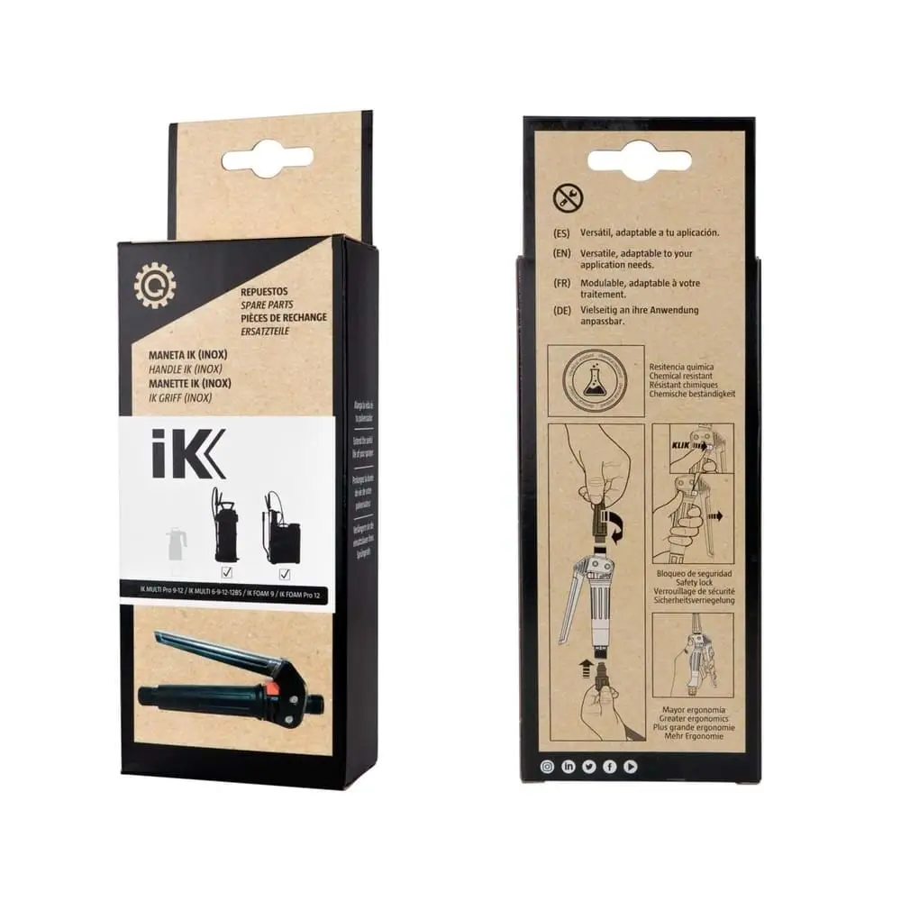 IK Handle INOX, IK basınçlı püskürtücülerle uyumlu, paslanmaz çelikten üretilmiş çok yönlü bir tutma koludur. Profesyonel kullanım için tasarlanmış olan bu aksesuar, uygulama esnasında daha fazla kontrol, konfor ve dayanıklılık sağlar.