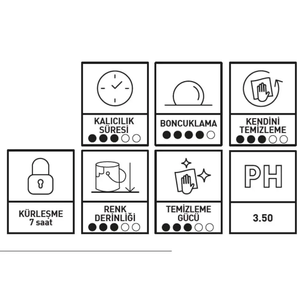 • Leke ve İz Giderici: Kireç lekeleri ve taze çizgilere karşı etkili olup, yüzeyi son işlem için hazırlar.