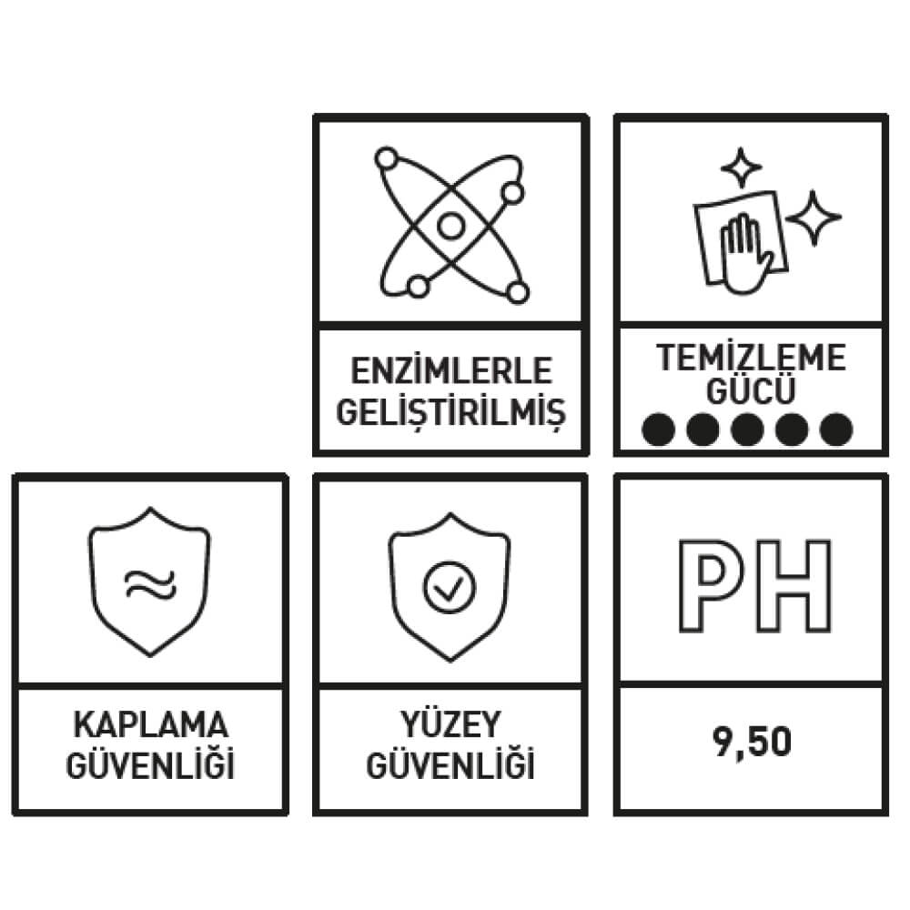 • Bitkisel Lipid Tabaka: Temizlik sonrası yüzeyde cilt benzeri yumuşaklık sağlayan doğal lipid koruması bırakır.