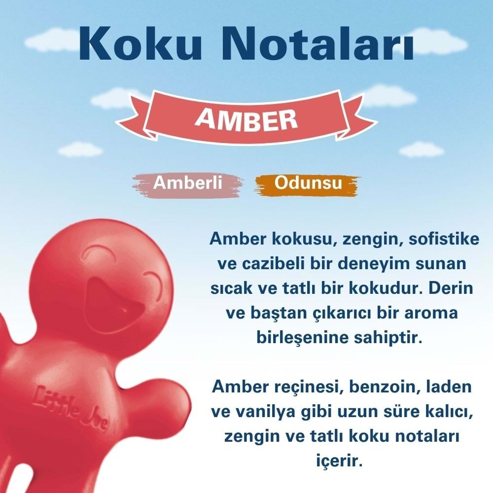 Little Joe Amber, sadece hoş kokular sunmakla kalmaz, aynı zamanda bulunduğu ortamın enerjisini yükseltir. Zarif tasarımı ve zengin amber kokusuyla hem gözünüze hem de ruhunuza hitap eder. Aracınızda ya da evinizde, her an ferahlığın ve rahatlığın tadını çıkarabilirsiniz.