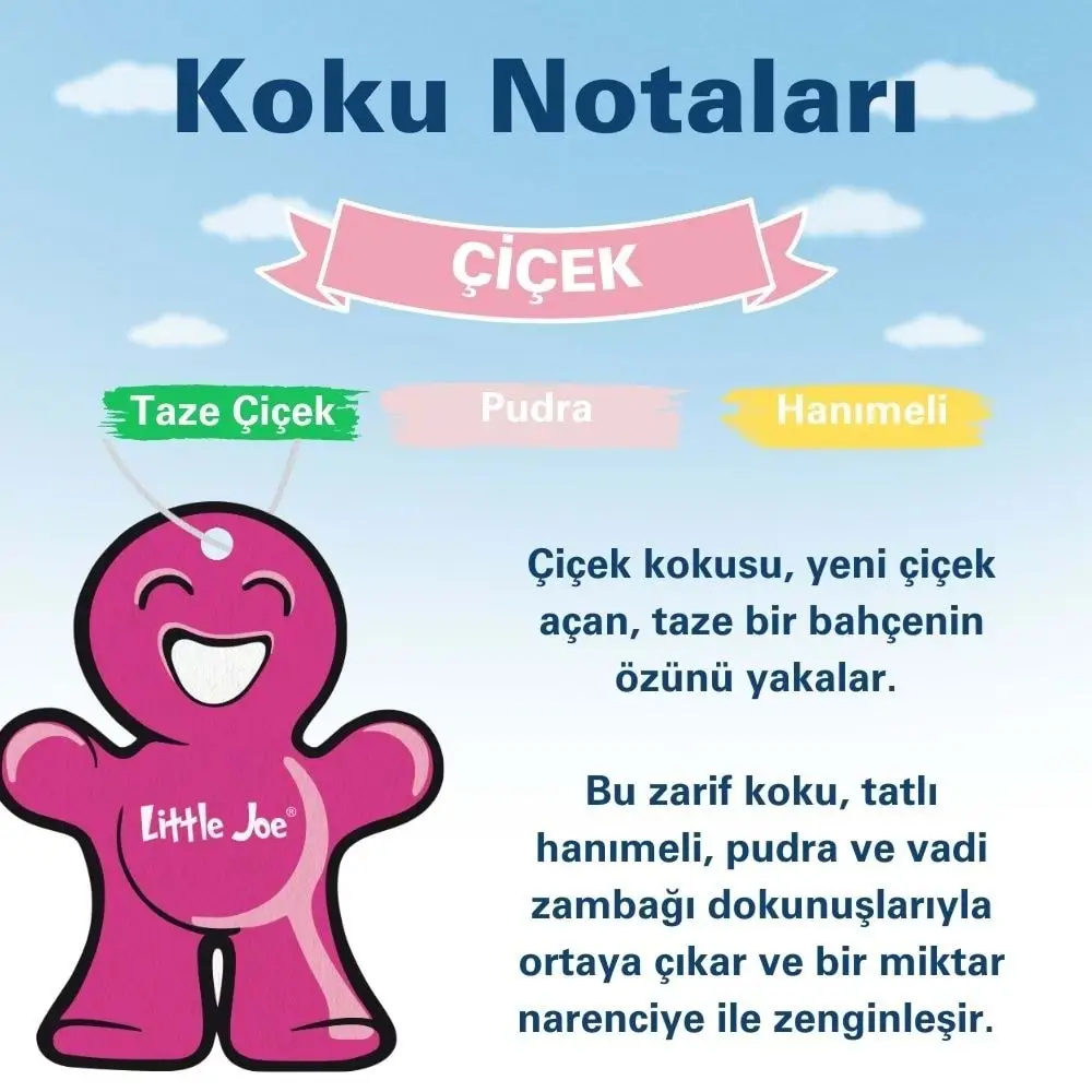 Little Joe Paper Çiçek, çiçeklerin ferahlatıcı ve doğal kokusunu yaşam alanlarınıza taşıyan benzersiz bir asma karton kokudur. Baharın tazeliğini yansıtan bu ürün, çiçek severler için tasarlanmıştır ve her ortamda çiçek bahçelerinin huzur verici etkisini yaratır. Kendi sınıfında benzersiz bir deneyim sunan bu ürün hem estetik tasarımı hem de etkili kokusuyla fark yaratır.