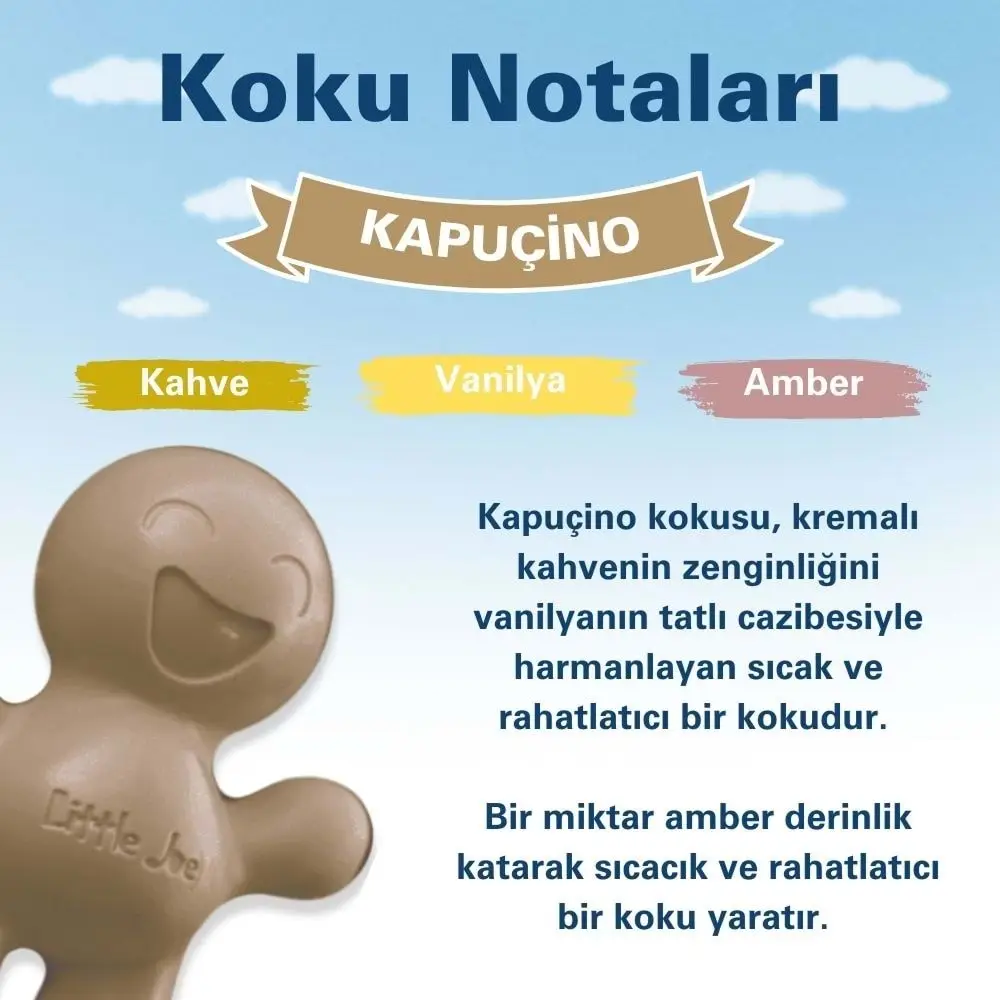 Little Joe Kapuçino, yalnızca kokusuyla değil, sevimli tasarımıyla da bulunduğu her ortama sıcaklık ve keyif katar. Kahve tutkunları için özel olarak tasarlanan bu ürünle, her anınızı daha keyifli ve ferah bir hale getirin. Sizi taze kahve kokusuyla buluşturan bu eşsiz ürünü hemen deneyin!