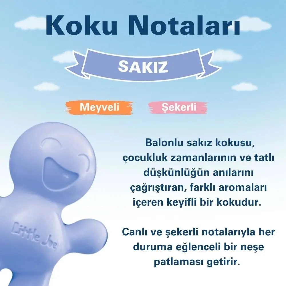 Little Joe Sakız, yalnızca etkileyici kokusuyla değil, aynı zamanda sevimli tasarımıyla da her ortamı daha neşeli hale getirir. Çocukluğunuzun keyifli hatıralarını canlandıran bu ürün, ferahlatıcı etkisiyle hem sizi hem de çevrenizdekileri mutlu edecek. Kendinize veya sevdiklerinize enerji ve mutluluk dolu bir ortam yaratmak için Little Joe Sakız’ı tercih edin!