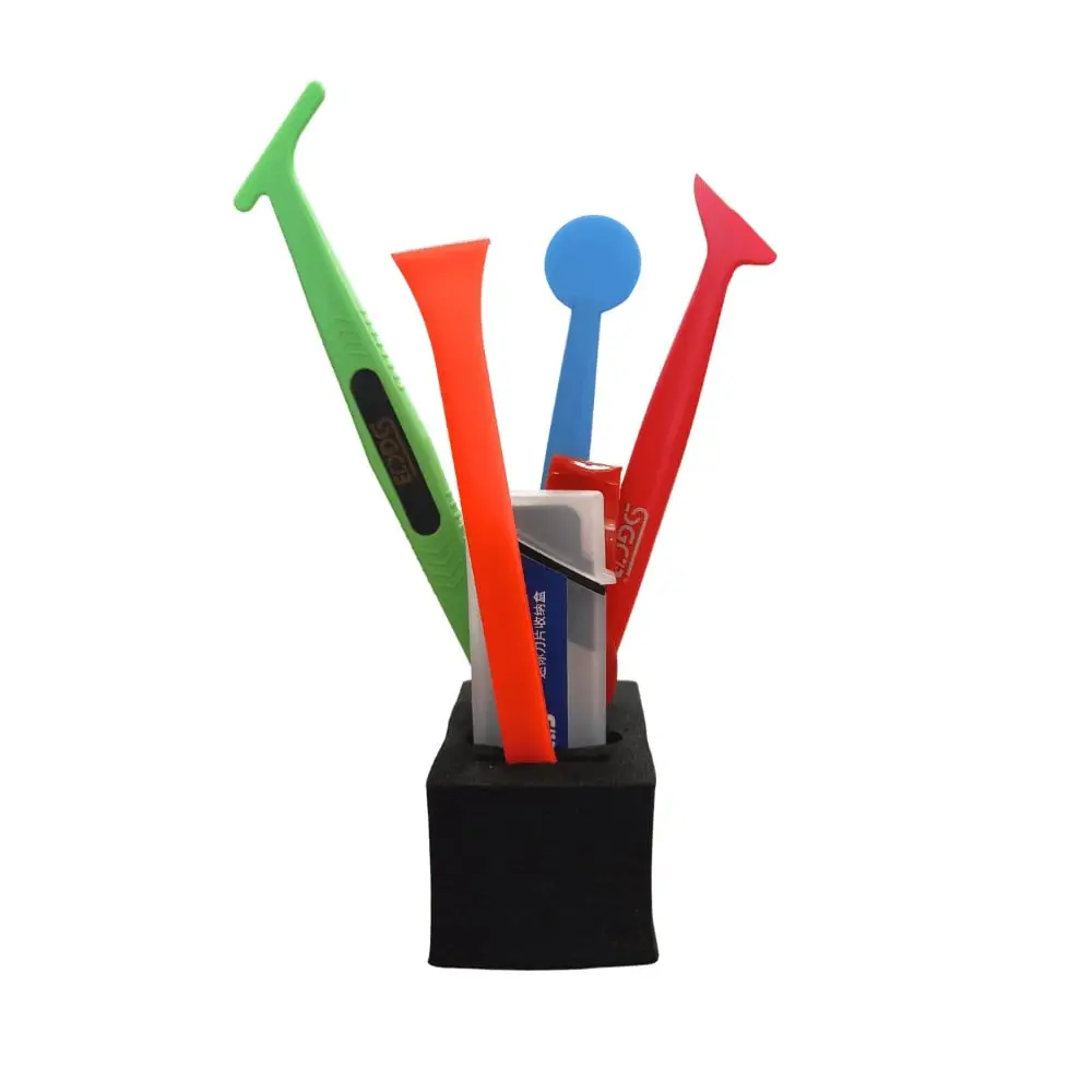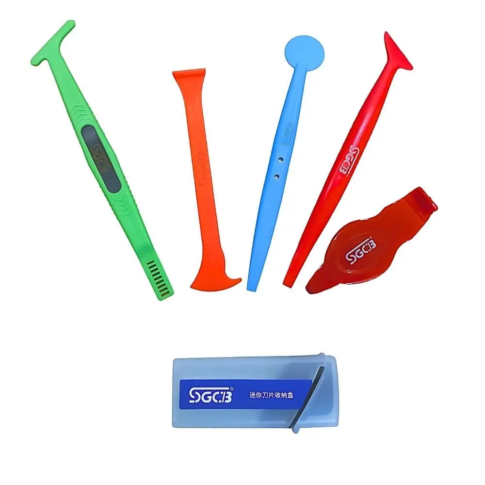 SGCB Wraps Applicator Tool Kit, cam filmi, folyo ve ppf uygulamacılarının ihtiyaçları doğrultusunda hazırlanmıştır. Hem cam hem de araç gövdesinde çalışırken oluşan boşluklar, köşeler ve kenarlarda araç yüzeyine zarar vermeden kolayca çalışabilmenizi sağlayan bu aparat seti yüksek kaliteli TPU malzemeden üretilmiştir. Mıktanıslı tasarımı sayesinde hem saklaması kolay hem de uygulama esnasında ulaşması ve muhafaza etmesi zahmetsizdir. Orta sertlik ve elastikliğe sahiptir. Kazıma ürünlerinin ağızları pürüzsüzdür. Araç boyasını çizmez.